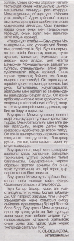 Кітапхана рухани жаңғыру ордасы - Сыздыкова К.  № 4. 22.01.22