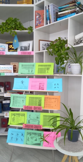 Физическая культура — это здоровье, движение — это жизнь, а здоровая жизнь — это счастье. Эти слова стали эпиграфом к мероприятию — библио — фитнесу «Энергия спорта» в Степной сельской библиотеке. Какую роль играет спорт в жизни человека? На этот вопрос посетили библиотеки отвечали по-разному. Одни очень прохладно относятся к спорту и считают его бесполезной тратой времени. Другие предпочитают заниматься каким — либо видом спорта или общефизической подготовкой, а для кого-то это средство существования. Каждый вправе иметь своё отношение к спорту, но все признают, что в большинстве случаев спорт укрепляет здоровье, характер и даже умственные способности людей, которые им занимаются, развивает в них такие навыки как ловкость, реакция, координация, выносливость, терпение и сила. А главное, он приносит людям массу положительных эмоций — при достижении человеком какого-либо результата или победе любимой команды. Участникам мероприятия была представлена книжная выставка "Значение физической культуры и спорта в жизни человека" и книги о спорте.