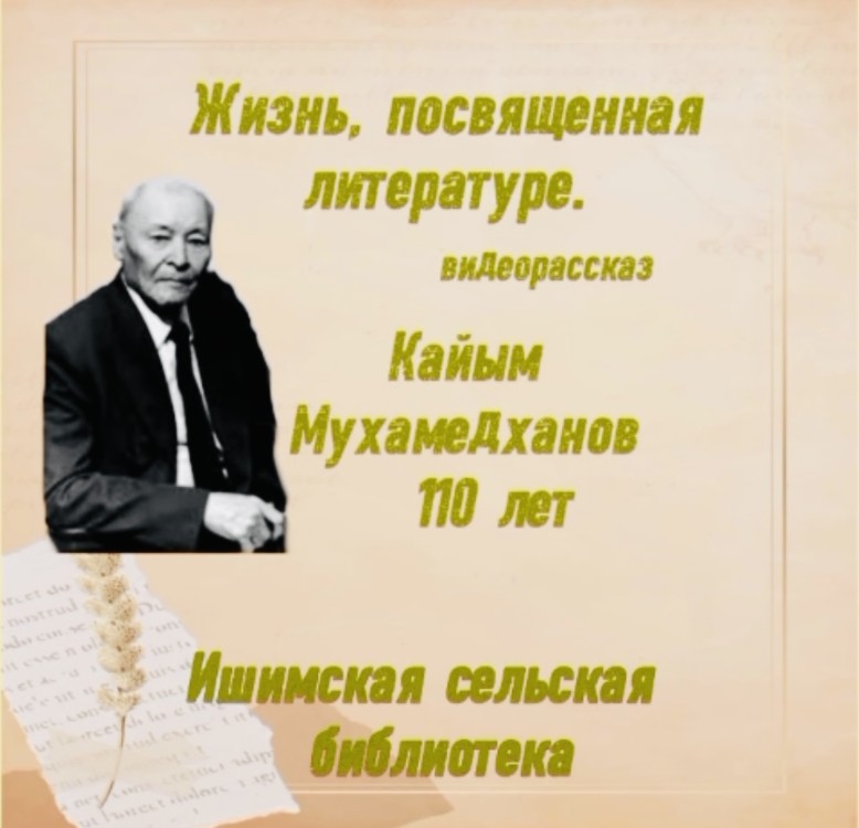 Ишимская сельская библиотека предлагает вашему вниманию видеорассказ, приуроченный к 110-летию со дня рождения Қайыма Мұхамедханұлы, «Жизнь, посвящённая литературе».