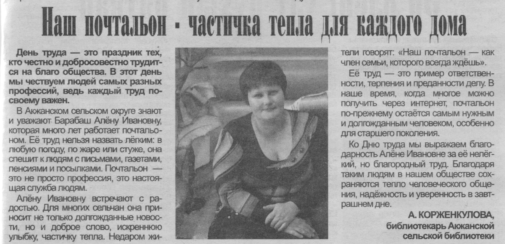 Наш почтальон частичка тепла для каждого дома А. Корженкулова Нива №39 от 27.09.25 стр.1