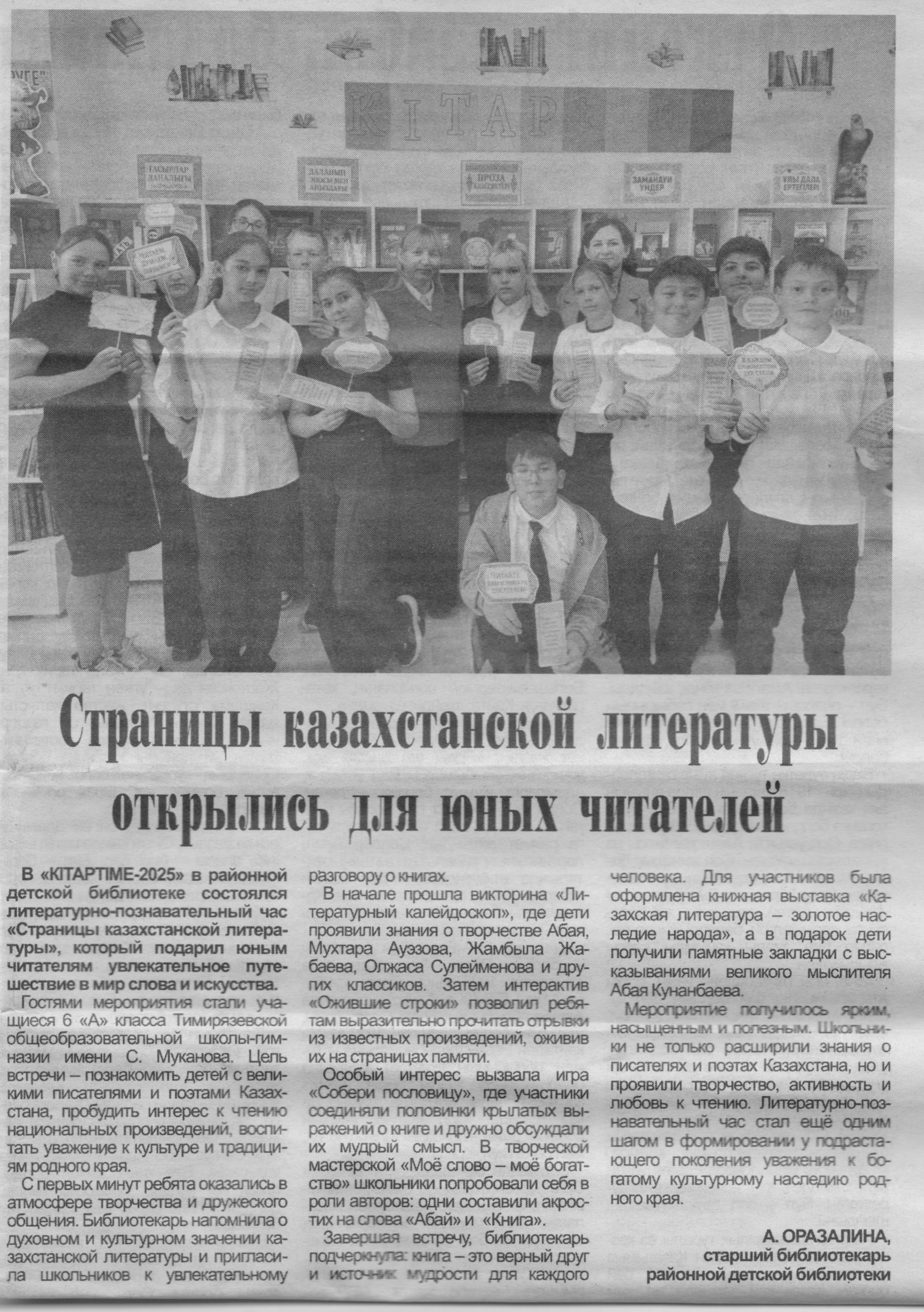 Страницы казахской литературы открылись для юных читателей А. Оразалина Нива №39 от 27.09.25 стр.3