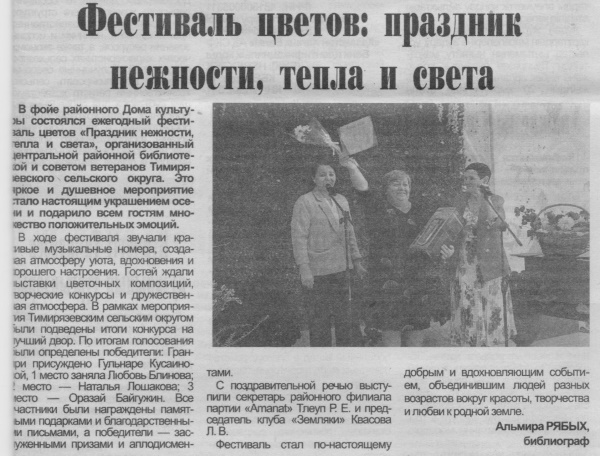 Фестиваль цветовпраздник нежности, тепла и света А. Рябых Нива №38 от 20.09.25 стр.1