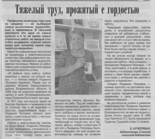 Тяжелый труд, прожитый с гордостью Е. Кучерявая Нива №40 от 04.10.25 стр.3